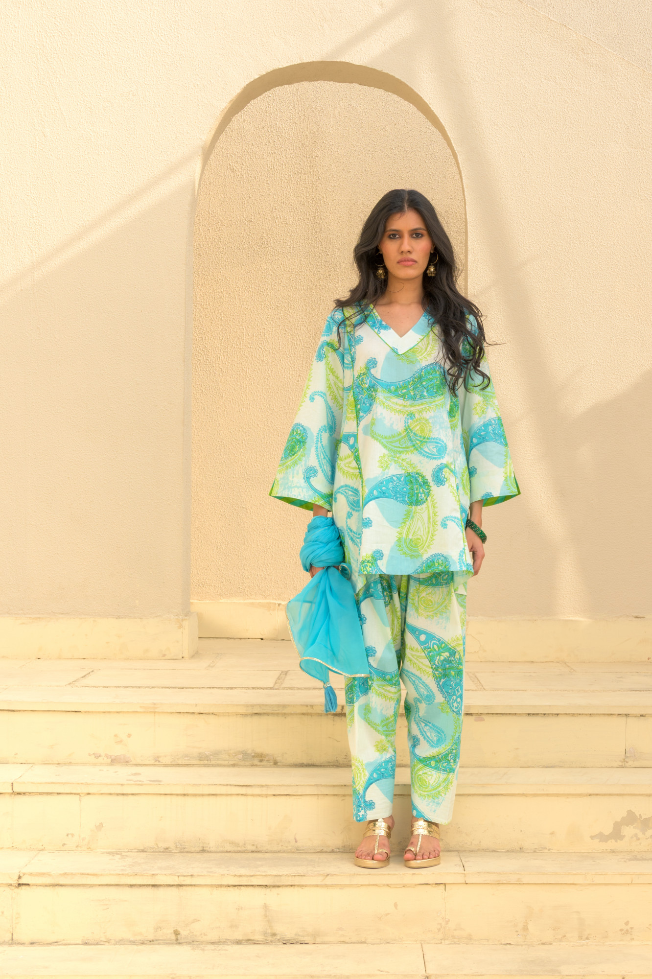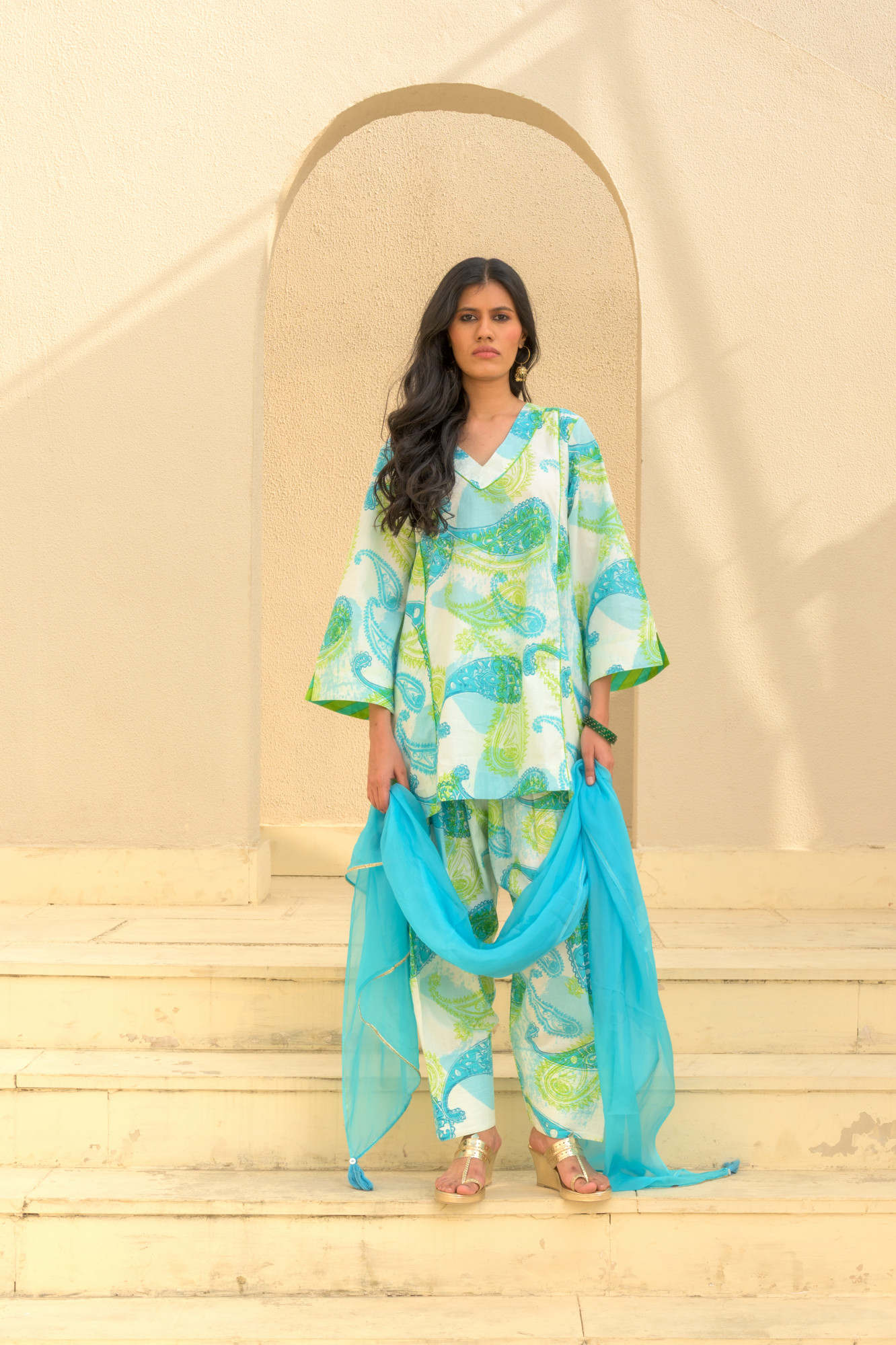 Handprinted in Jaipur, this pure cotton suit set blends timeless craft with a bold, modern edge. Featuring vibrant aqua-lime paisley and a breezy farshi salwar, it’s designed for women who love comfort, colour, and culture—with a hint of sass. Made from 100% breathable cotton, this set delivers effortless style for everyday wear, travel, or relaxed festive dressing. Tradition re-crafted, mood elevated. Shop the perfect mix of heritage and contemporary cool.