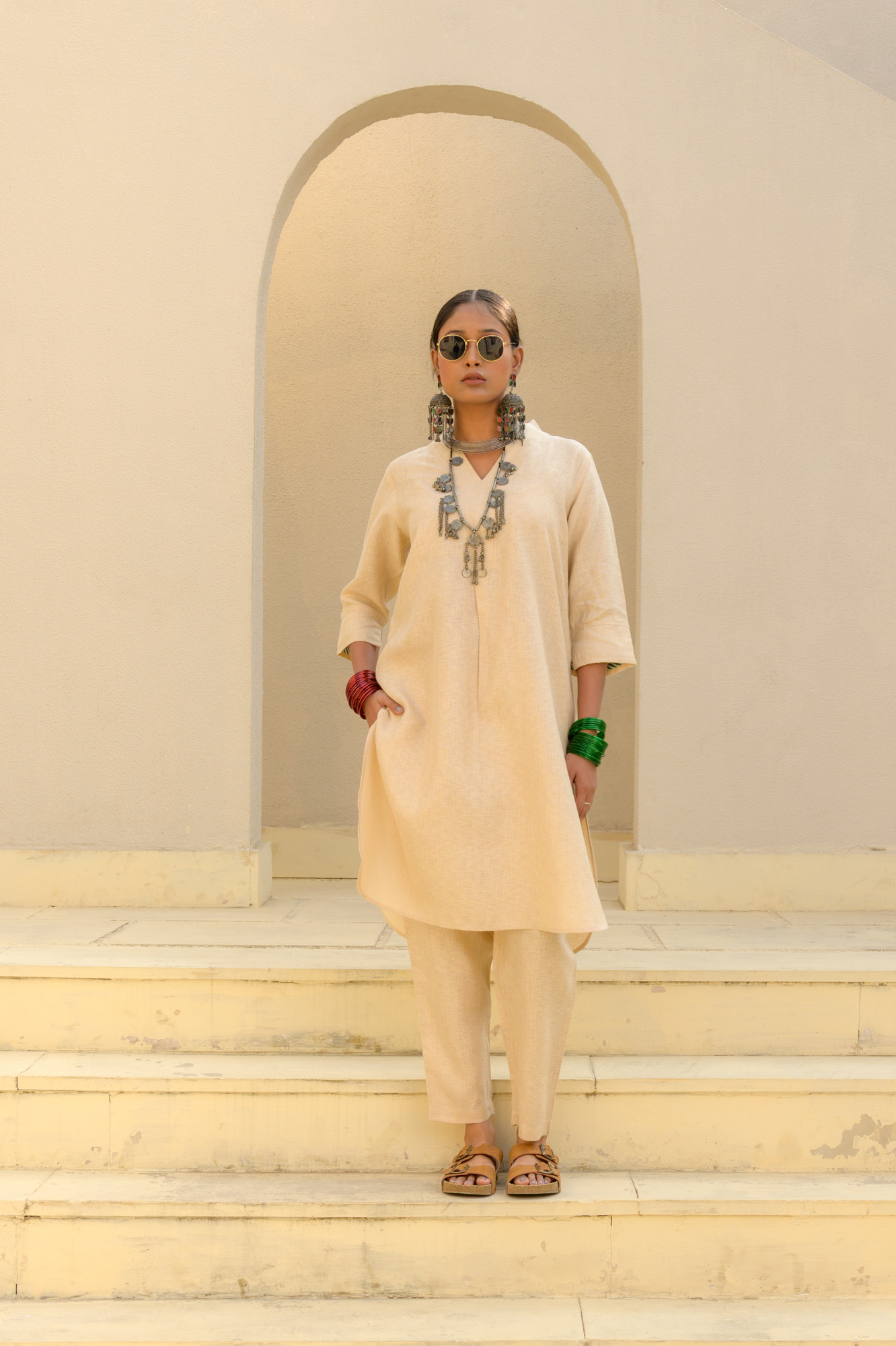 Step into effortless style with our breezy Pink Linen Kurta Set. Designed for the modern muse, this isn't just traditional wear—it’s a whole mood. The highlight? The distinct POIE SIGNATURE patch on the back that screams unparalleled funk. It bridges the gap between classic comfort and streetwear cool. Perfect for sunny brunches or artistic escapades, the breathable fabric keeps you chill while the quirky detailing ensures you stand out. It’s utility meets attitude—wear your vibe on your back.