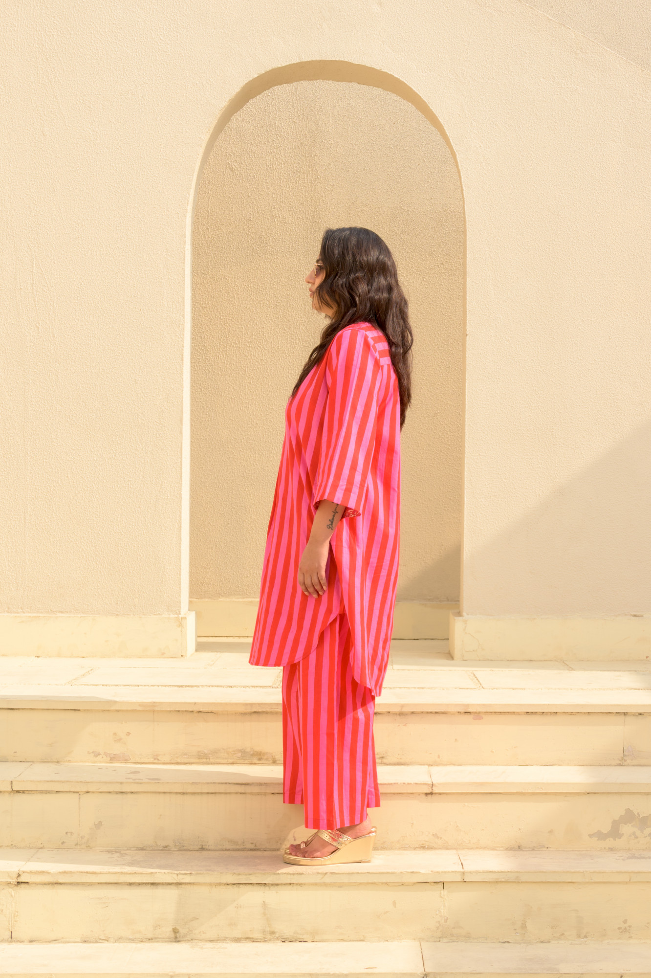 Meet the set that does all the talking—so you don’t have to. This pure cotton kurta, handprinted in Jaipur, serves quintessential print pairingswith zero effort. Paired with wide-leg printed pants that move like a breeze, it’s the perfect blend of comfort and “I woke up fabulous.” Soft, breathable, and unapologetically eye-catching, this duo is made for women who don’t believe in blending in. Wear it, own it, and let the compliments chase you.